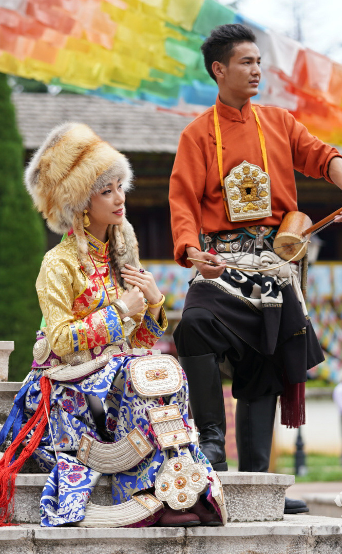 云南省境內的藏族人口約12萬,主要聚居在云南迪慶藏族自治州,少量散居于麗江、貢山、永勝、寧蒗等縣。藏族信奉藏傳佛教,白色被藏族視為純潔神圣的象征。藏族村占地21畝,村內有大小中甸地區的坡頂民居和德欽地區的雕樓式平頂民居。莊嚴神圣的藏傳佛寺,壯觀的迎賓白塔,象征吉祥和睦的“白牦?!钡袼芘c獨具風格的藏式建筑互為映襯,相得益彰。藏族主要節日有:藏歷年、丹巴日古(七月夏游節)、昂曲節、格冬節等;主要禮節是...